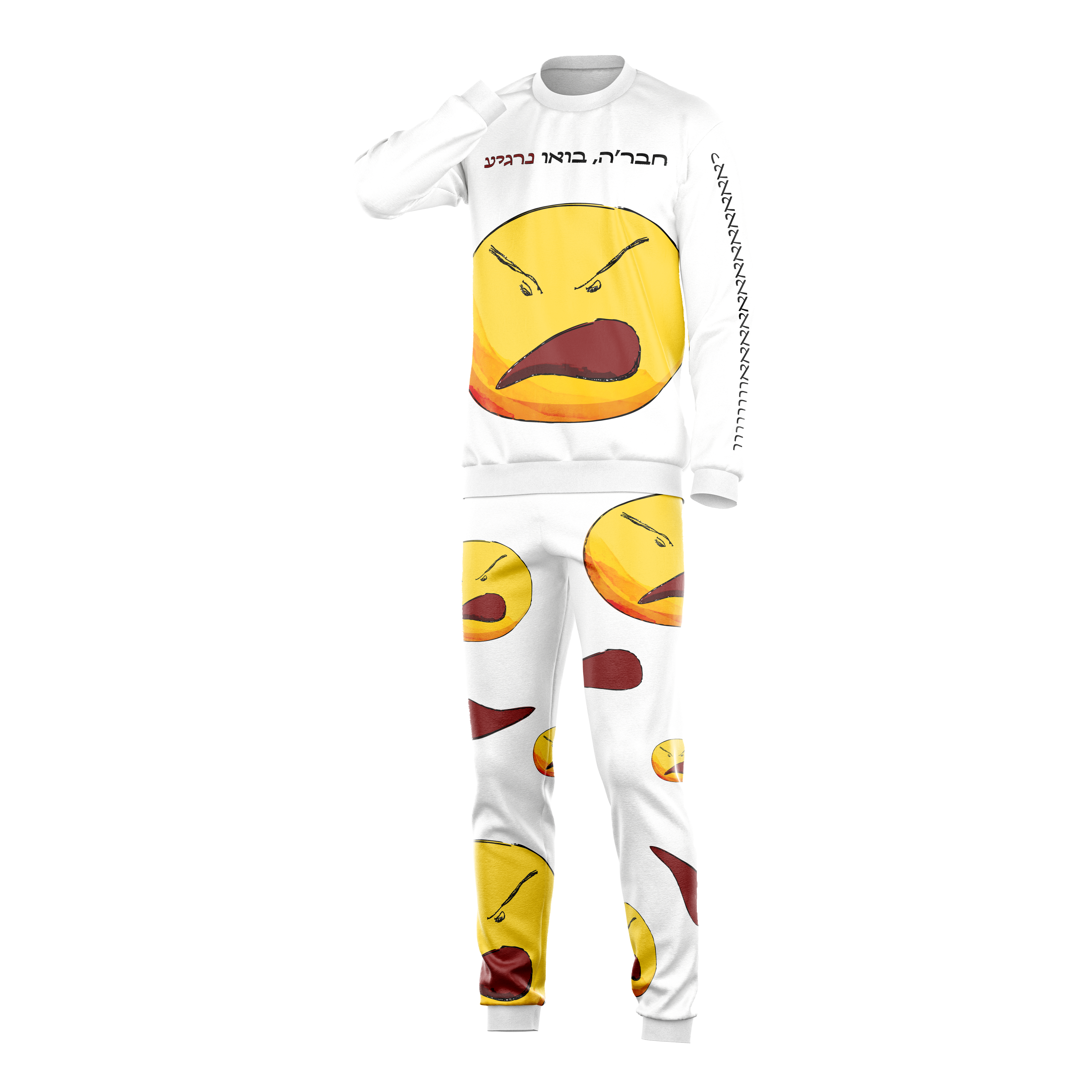 פיג'מת אימוג'י זועף עם כיתובים